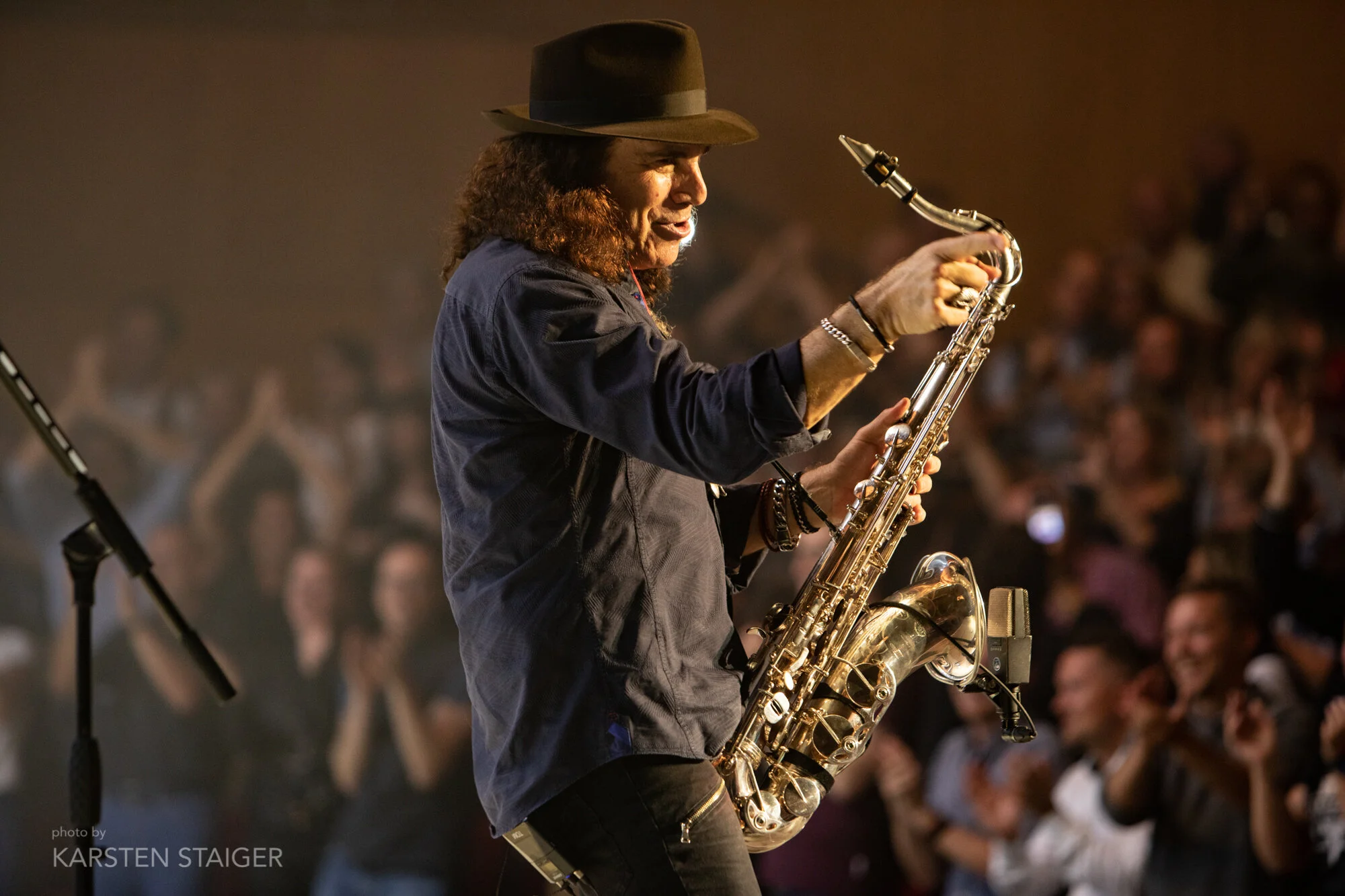 A multi-instrumentalist, Tom plays rhythm guitar, keyboards, sax, and flute. It was the music of Blood Sweat and Tears and Chicago that truly fired his interest in the sound of horns. Equally influenced by progressive rock bands, it was the groundbreaking work of big band trumpet player, Maynard Ferguson, that changed his life. “When I started playing sax I tried to sound like him, learning to nail the high notes,” reveals Gimbel. “This was good training to play the solo on “Urgent” years later! SEE MORE